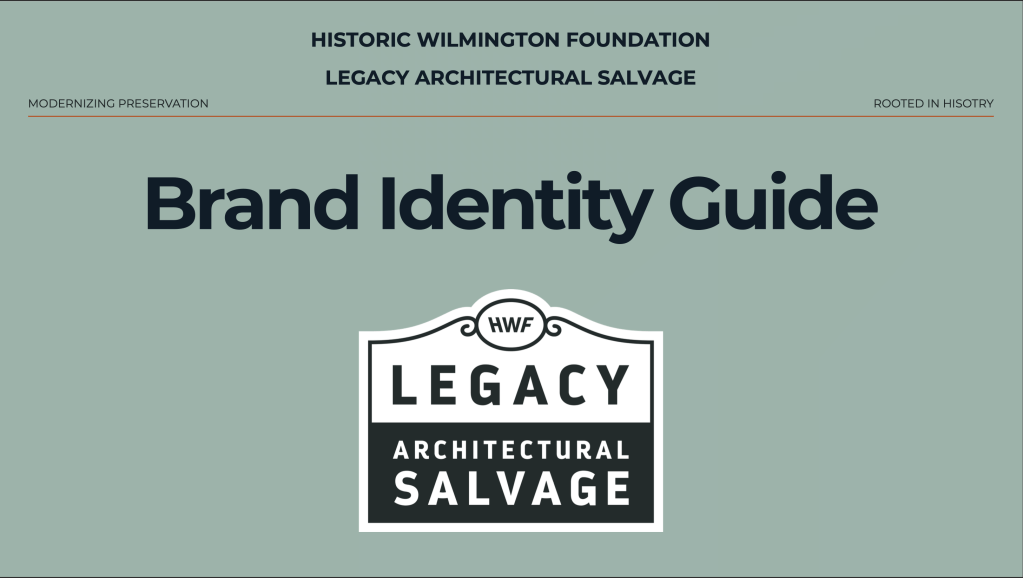 This brand identity guide was developed for the Historic Wilmington Foundation’s Legacy Architectural Salvage program, with a focus on engaging younger, DIY-oriented audiences.